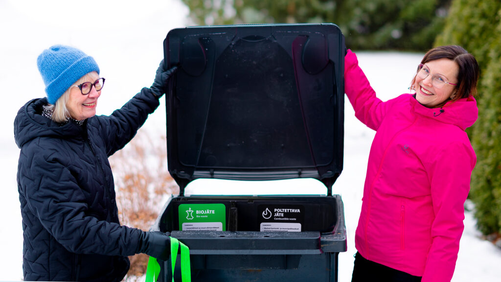 – Pojallamme Helsingissä on biojätteen erilliskeräys, joten siellä ollessamme olemme jo tottuneet lajittelemaan biojätteet, Liisa Peura kertoo.