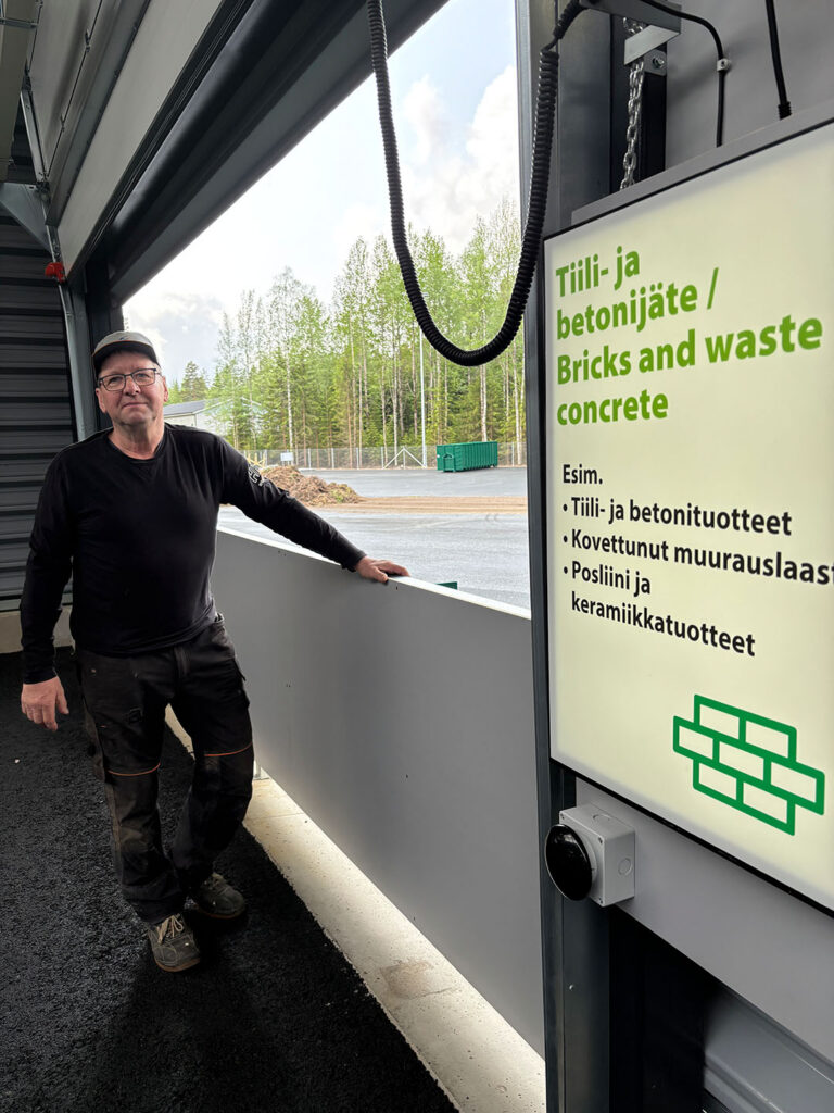 Timo Kuusisto toi RE-pisteelle tiili- ja betonijätettä. Hän totesi, että paikka on hieno ja palvelee varmasti asiakkaita, kun on läpi vuorokauden mahdollisuus asioida. Kuusisto oli saanut henkilökunnalta opastusta RE-apin käyttöön ja hänen mielestään vaikuttaa siltä, että sitä on helppo käyttää.